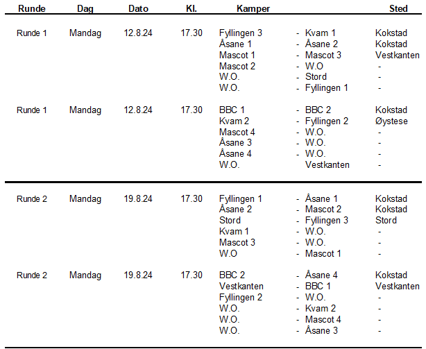 Her er spilleoppsettet for de to første rundene: