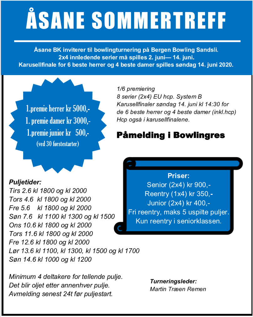 I de tilfeller hvor ansvarlige kommunale myndigheter vil tillate bowlingspill i henhold til smittevern-regler for idretten offentliggjort 7. mai: NIFs fellesidrettslige anbefalinger, og «Smittevernsveileder for idrett» offentliggjort 11. mai: utarbeidet av Helsedirektoratet og Folkehelseinstituttet – vil NBF tillate våre medlemmer å spille bowling; både trening og konkurranser. Alle banepar kan benyttes forutsatt at det er mulig å holde minst 1 meters avstand mellom alle personer, maksimalt 50 personer under konkurranse og 20 personer under trening, til enhver tid. (Personer i samme husstand unntas.) Tilskuere/foresatte regnes inn i maksimaltallene, mens betjening/funksjonærer holdes utenfor. Det er kun tillatt å berøre/benytte sitt eget personlige utstyr/kuler. Bruk av garderober er ikke tillatt, men toaletter skal kunne benyttes. Ved konkurranser skal ansvarlig arrangør til enhver tid ha oversikt over deltagere/hvem som er tilstede. Arrangør/klubb er ansvarlig for at aktiviteter, både trening og konkurranser gjennomføres ansvarlig og i tråd med reglene, inkludert nødvendig opplæring og informasjon før oppstart. Konkurranser skal kun arrangeres lokalt, slik at større mobilitet og blanding av deltagere på tvers av geografiske områder vil unngås. Det forutsettes at alle utøvere ikke har påvist smitte, er symptomfri, ikke er isolert eller er i karantene.